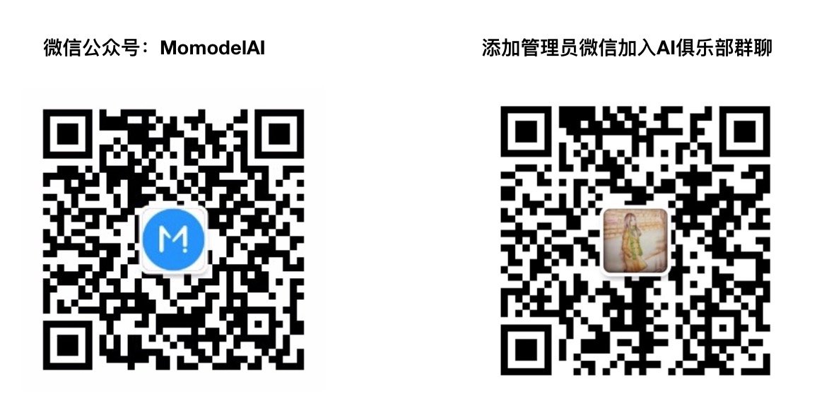 关注微信公众号 MomodelAI,回复 姓名+学校或单位+联系方式 进行报名,审核通过后会收到确认消息。