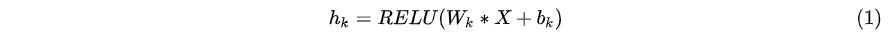 其中表示卷积运算,输出$h_k$将是一个矢量,RELU 函数为:
