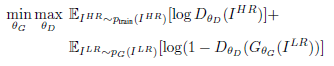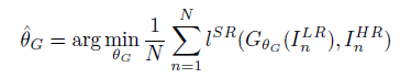 对给定的HR图像进行降采样得到LR图像,将LR图像作为输入,训练生成器 $G_{θ_G}$,生成对应的HR图像,该训练过程与训练前馈CNN类似,对网络参数$ \hat θ_G $进行优化,如下: