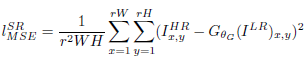 在图像超分辨率领域,最常被用来最优化的损失函数是基于像素的MSE (mean squared error)。尽管它能取得很高的PSNR,但由于它丢失了图像的高频特征,在图像的纹理方面并不能取得满意的结果。MSE用公式表示如下: