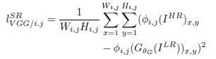 Φ表示在VGG19网络中第i个最大池化层之前的第j个卷积层(在激活层之后)的特征图,VGG loss是重构图像和参考图像的特征图的欧式距离,上式中的$W_{i,j}$和$H_{i,j}$表示特征图的维度。