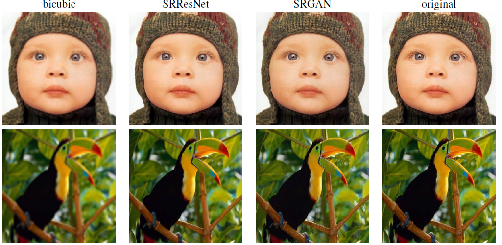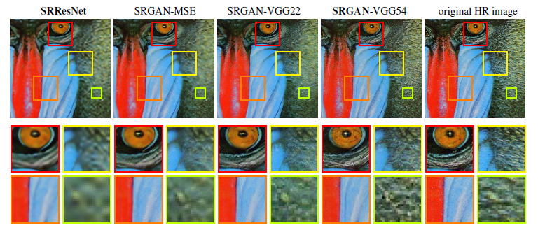 - 建立了使用PSNR和SSIM为评价标准的SRResNet,对图像进行放大4倍,取得了最好的测试结果。