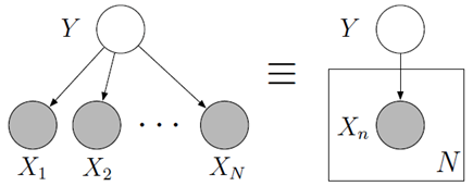 对于无法准确描述的变量关系通过引入隐含节点来解决。在LDA中,通过隐含节点的后验概率来描述词的共现现象,并且对其赋予较高的概率,用公式可以表述为: \(P\left(y, x_{1}, \ldots, x_{n}\right)=P(y) \prod_{n=1}^{N} P\left(x_{n} | y\right)\)
