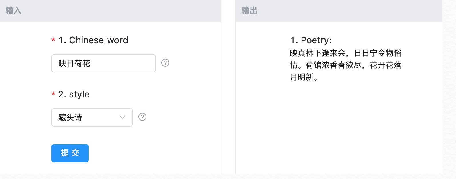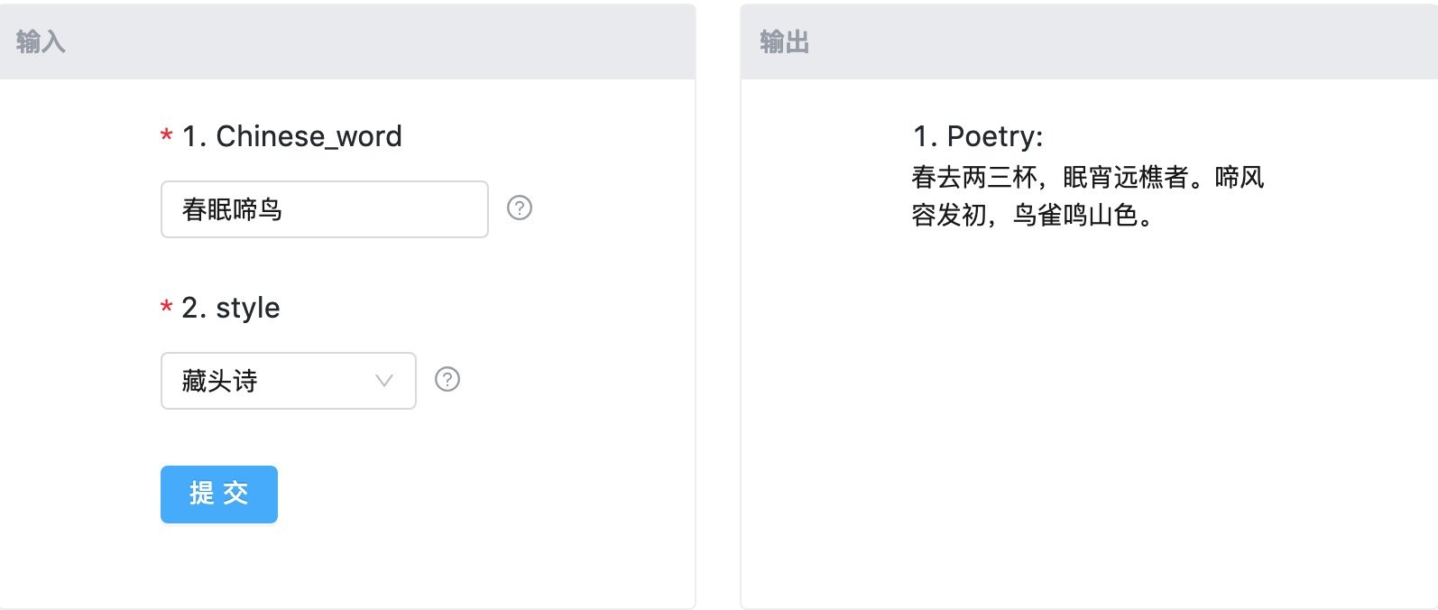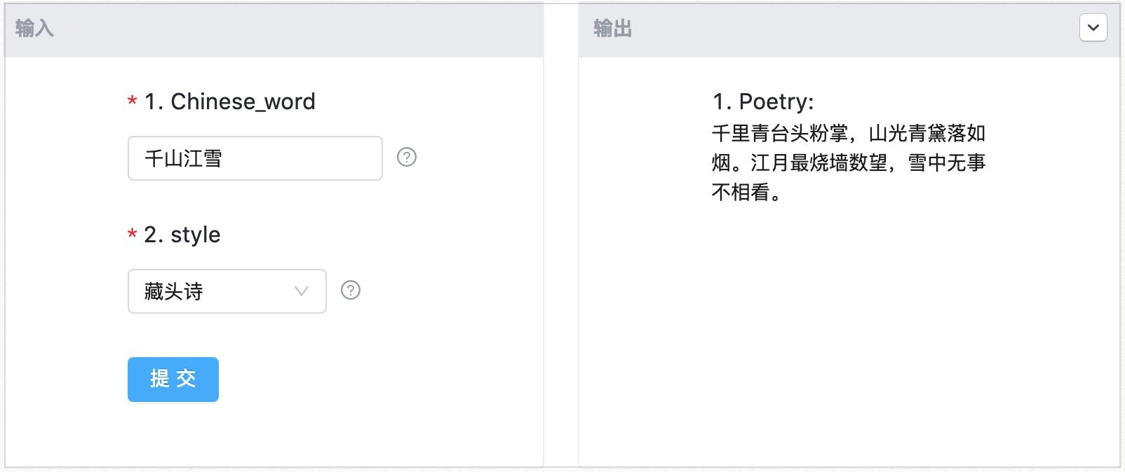 调用前面训练好的模型我们就可以实现一个古诗词的应用了,刚刚 Mo 写的诗就是这样生成的: